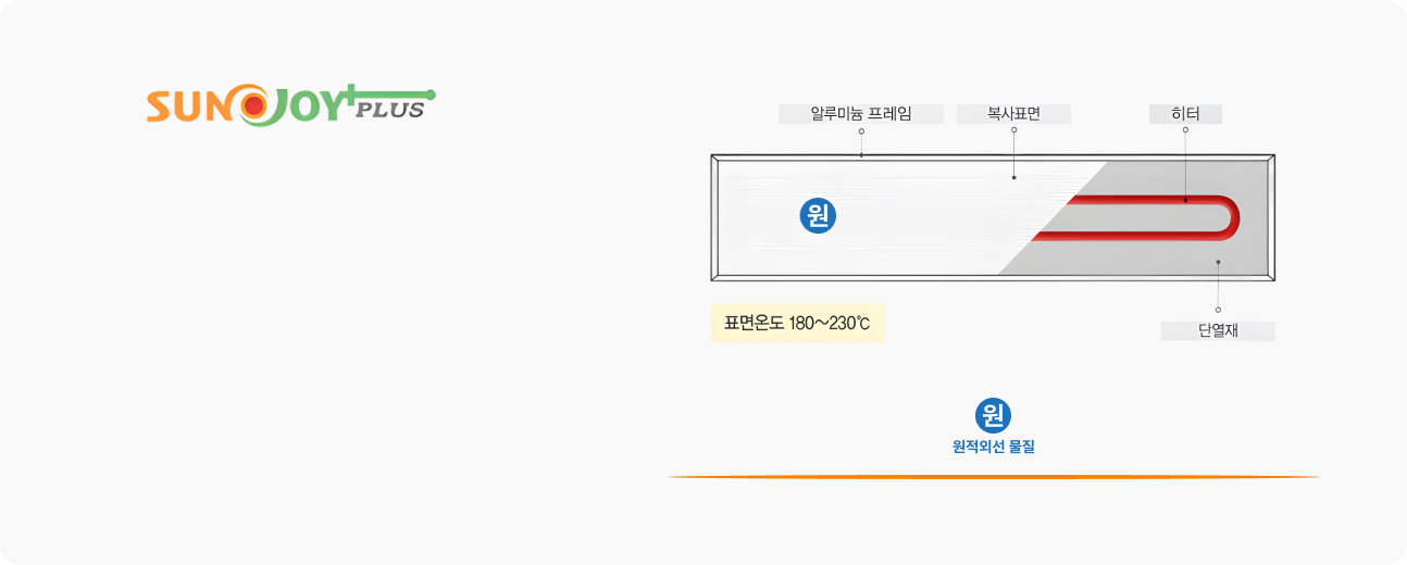 전원을 투입하면 제품 표면에 열이 발생하고 원적외선(4~14㎛, 중심파장 9㎛)이 복사되면서 체온을 올려줌과 동시에 실내온도를 높여줍니다.